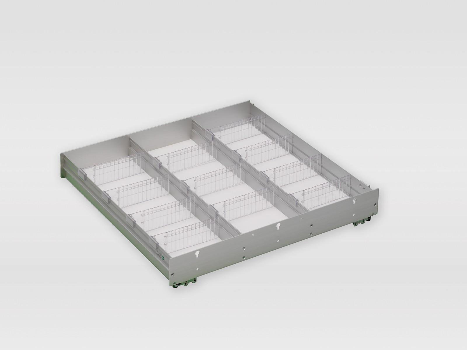 H+H SYSTEM stellt Schubladen in jeder Größe, in verschiedenen Materialien und Ausführungen, für alle Anforderungen und Bereiche, her. Hygiene und Flexibilität stehen im Vordergrund. In Kombination mit den flexiblen Schiebeteilern und dem Organisationsprogramm bringt das System Ordnung, Übersicht und Sicherheit in die Schublade. Die Teiler sind leicht entfernbar um den Innenraum optimal zu reinigen.