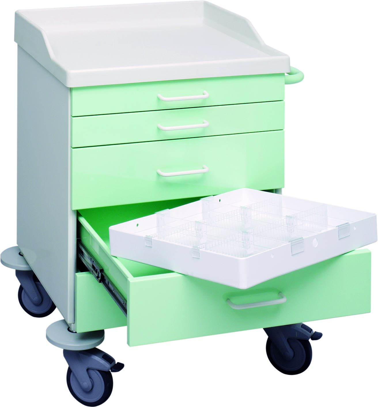 Für Ihren Funktions- oder Pflegewagen stehen Wannen und Boxen in allen Abmessungen und Sonderanfertigungen zur Auswahl. Das MedTray punktet mit einfachem und raschem Austausch. Eine schnelle Reinigung und optimale Hygiene sind damit ganz einfach möglich. Für eine übersichtliche Organisation können die flexiblen Unterteilungen in der Wanne verwendet werden. Die flexiblen Schubladenteiler ermöglichen ein einfaches und rasches Verschieben und damit einen Platzgewinn bis zu 30 %.